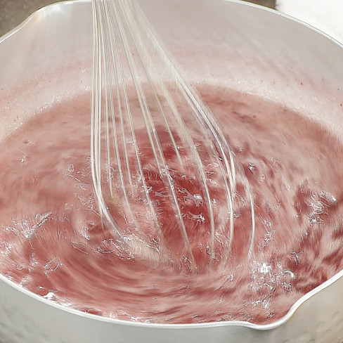 ∥ 加入果醬,待再次煮滾後放入平盤內放涼,切片擺盤即可